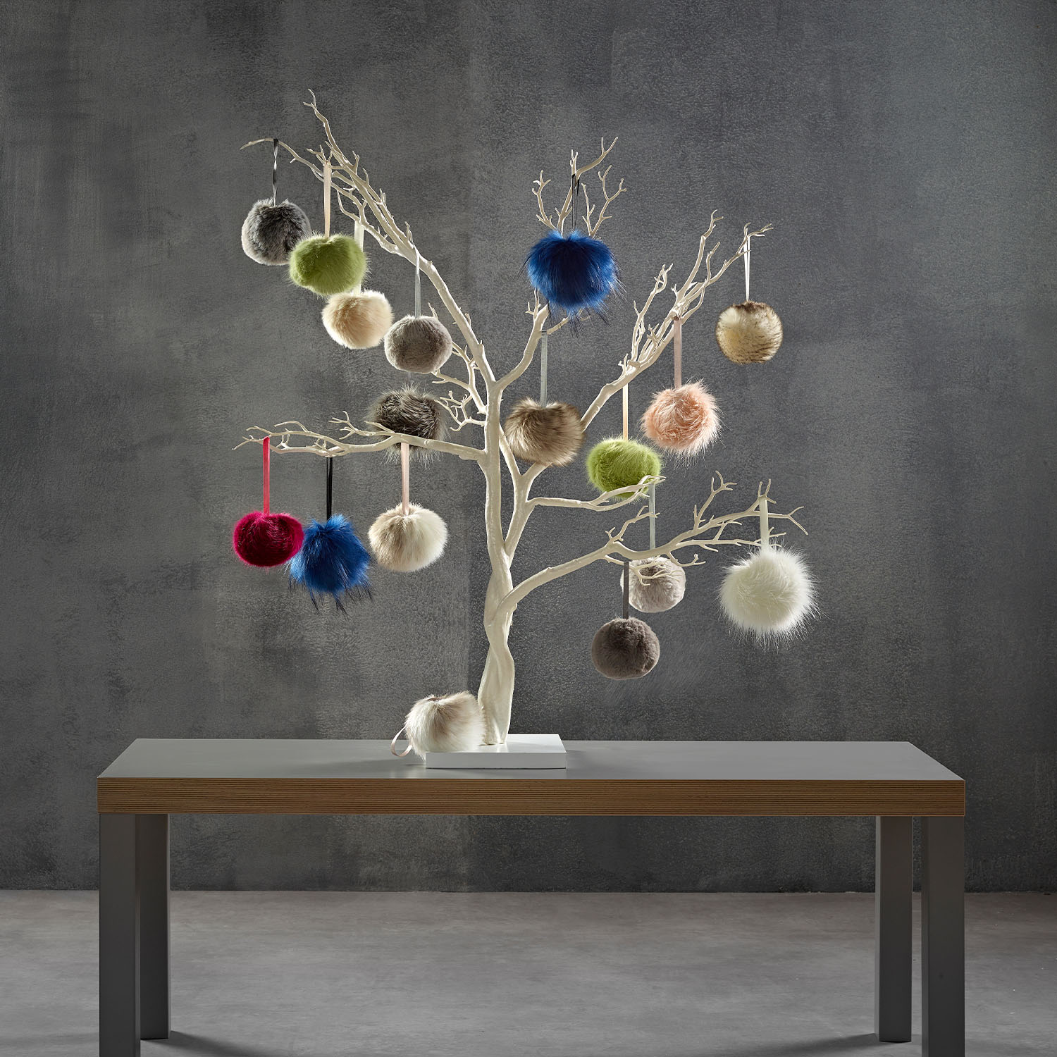 Katrina Hampton faux fur baubles, chosen for their funky look and stylish tones. Faux fur baubles add sophisticated elements to any Christmas interior.